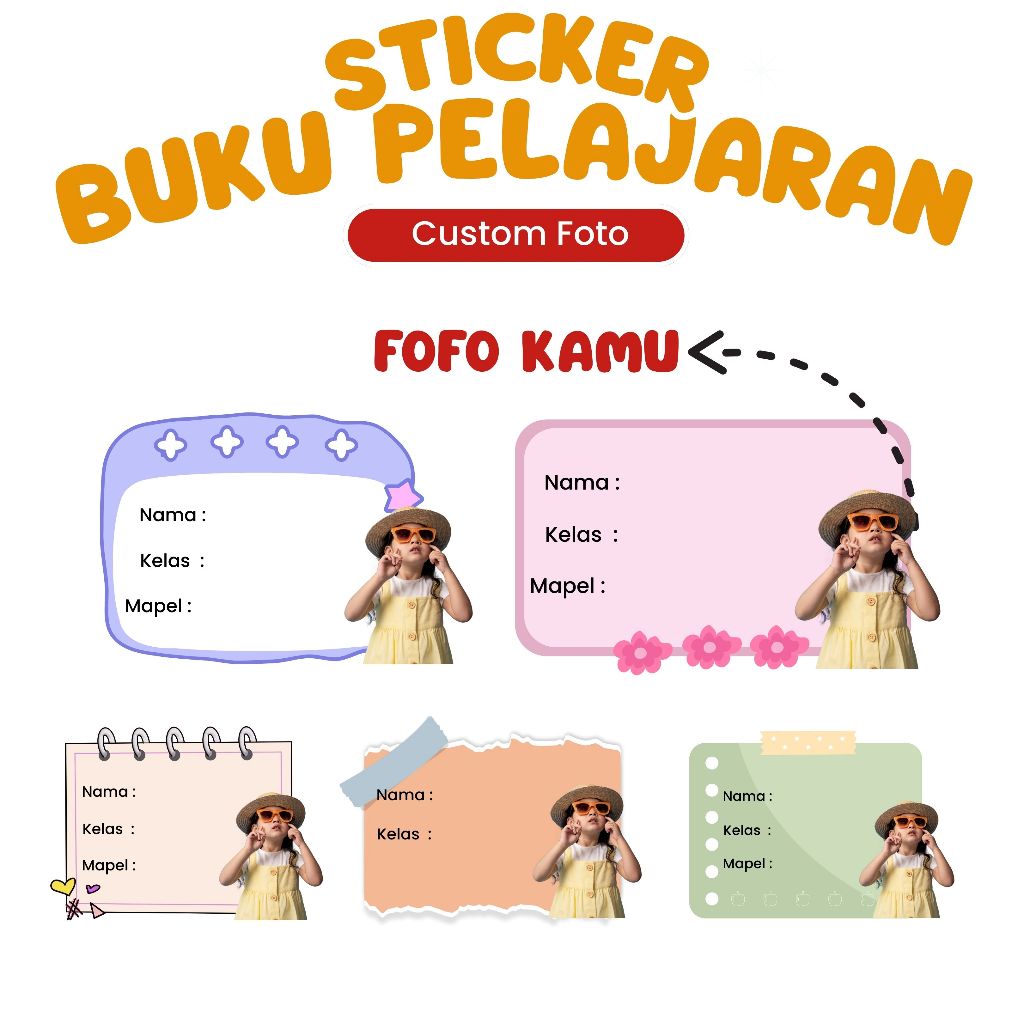 Sticker Label Buku Pelajaran Custom Foto Anak