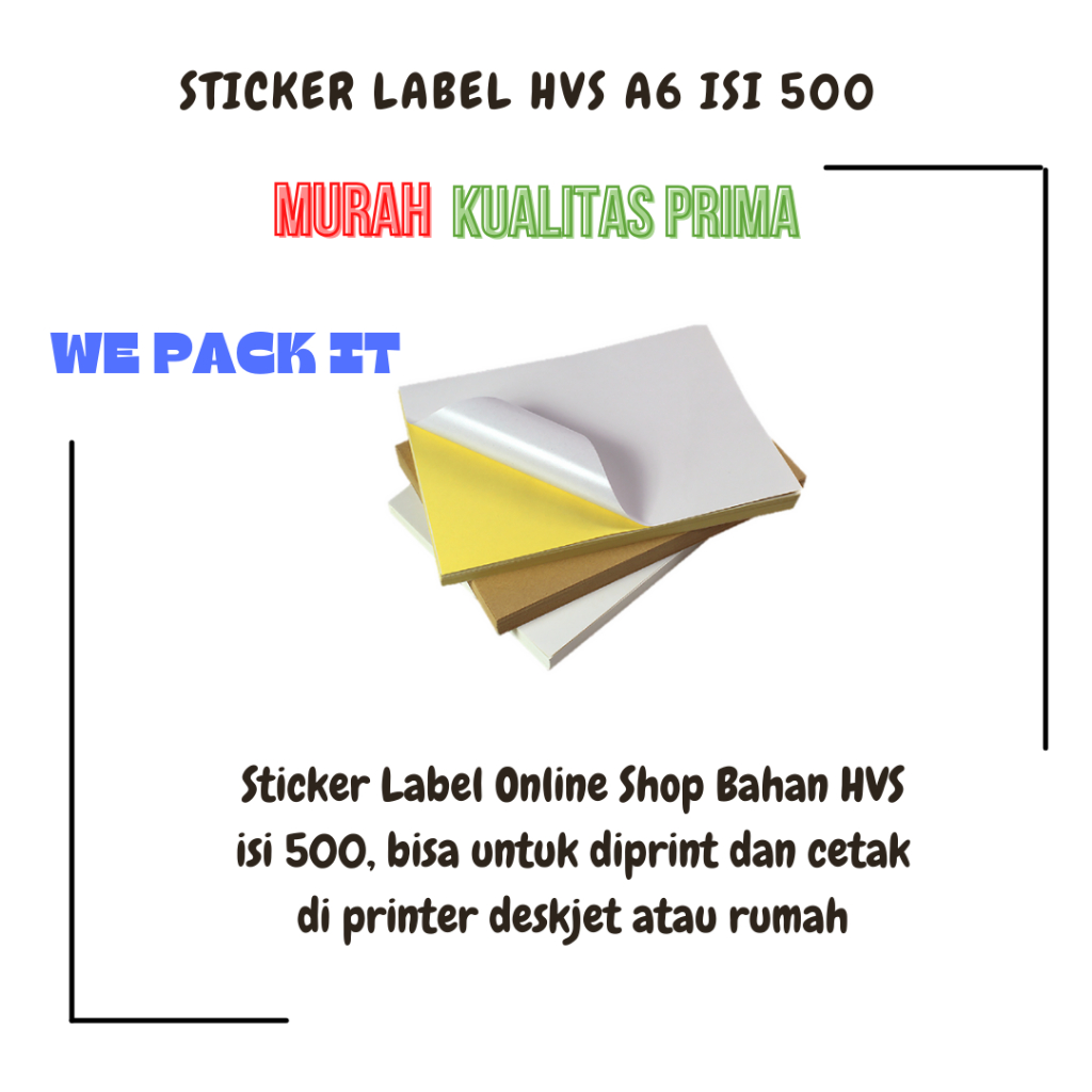 Stiker Label HVS A6 isi 500, Kualitas Prima, bahan premium terbaik