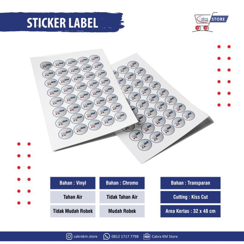 Sticker Label Kemasan | Vinyl | Cromo | Transparan Harga tersebut untuk perlembar A3+ Banyaknya sticker tergantung ukuran ya kak :) HANYA MENERIMA FILE SIAP CETAK >>>> WAJIB DIBACA
