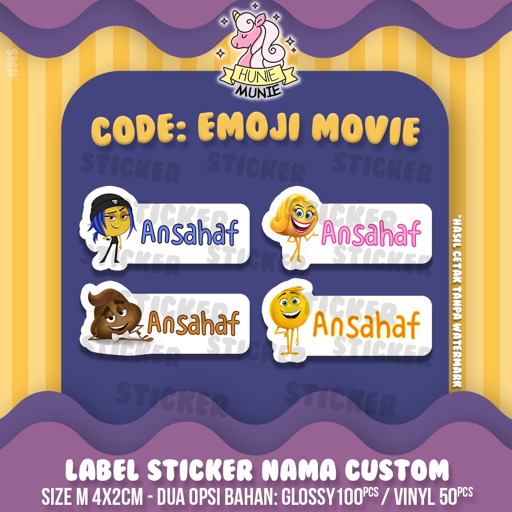 Sticker Label Nama Custom - Emoji Movie (100pcs) Stiker
