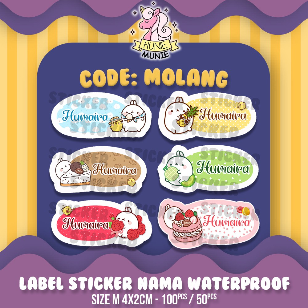 Sticker Label Nama Custom - Molang (100pcs) Stiker Hunie Munie