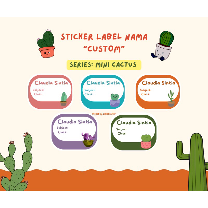 Sticker Label Nama Lucu Custom (Series Cute Cactus)