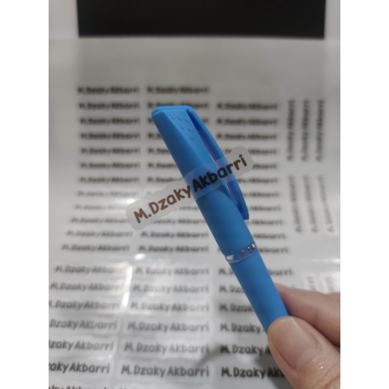 Ukuran sticker 1cm tinggi, panjang mengikuti panjang nama. Bahan sticker vinyl transparan waterproof, dengan extra perlindungan lapisan laminating, aman dicuci.