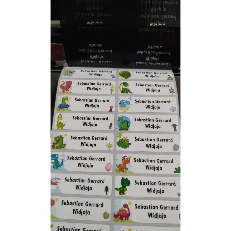 Label Nama Waterproof dengan gambar karakter dinosaurus.