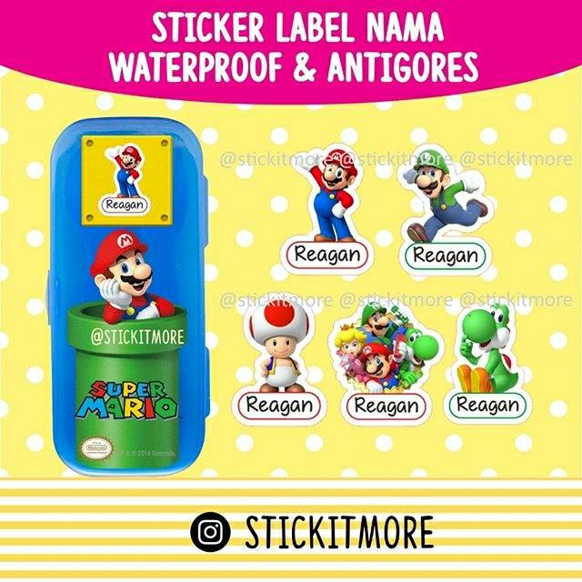 Sticker Label Nama Waterproof Mario Bros