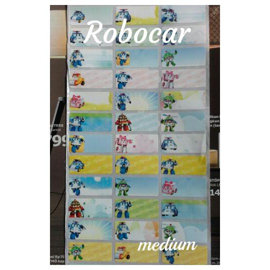 Sticker Nama Waterproof ROBOCAR tersedia dalam 1 ukuran & 4 pilihan harga :