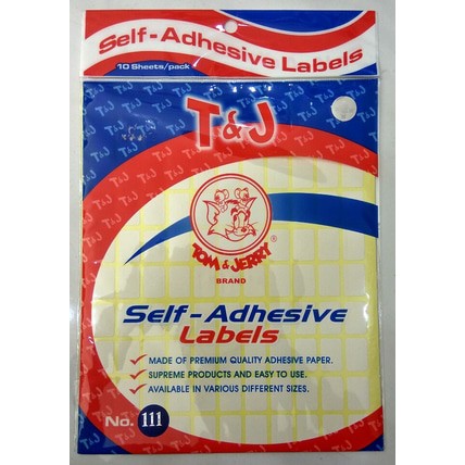 Self-Adhesive LabelsT&J atau lebih dikenal dengan stiker label Tom & Jerry No.111, biasa digunakan sebagai pengganti correction pen/tip-ex, lebih bersih dan tidak belepotan.