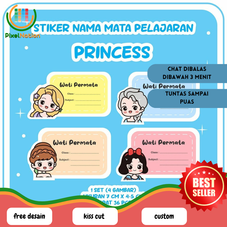 STIKER NAMA ANAK MATA PELAJARAN KARAKTER isi 36 PCS