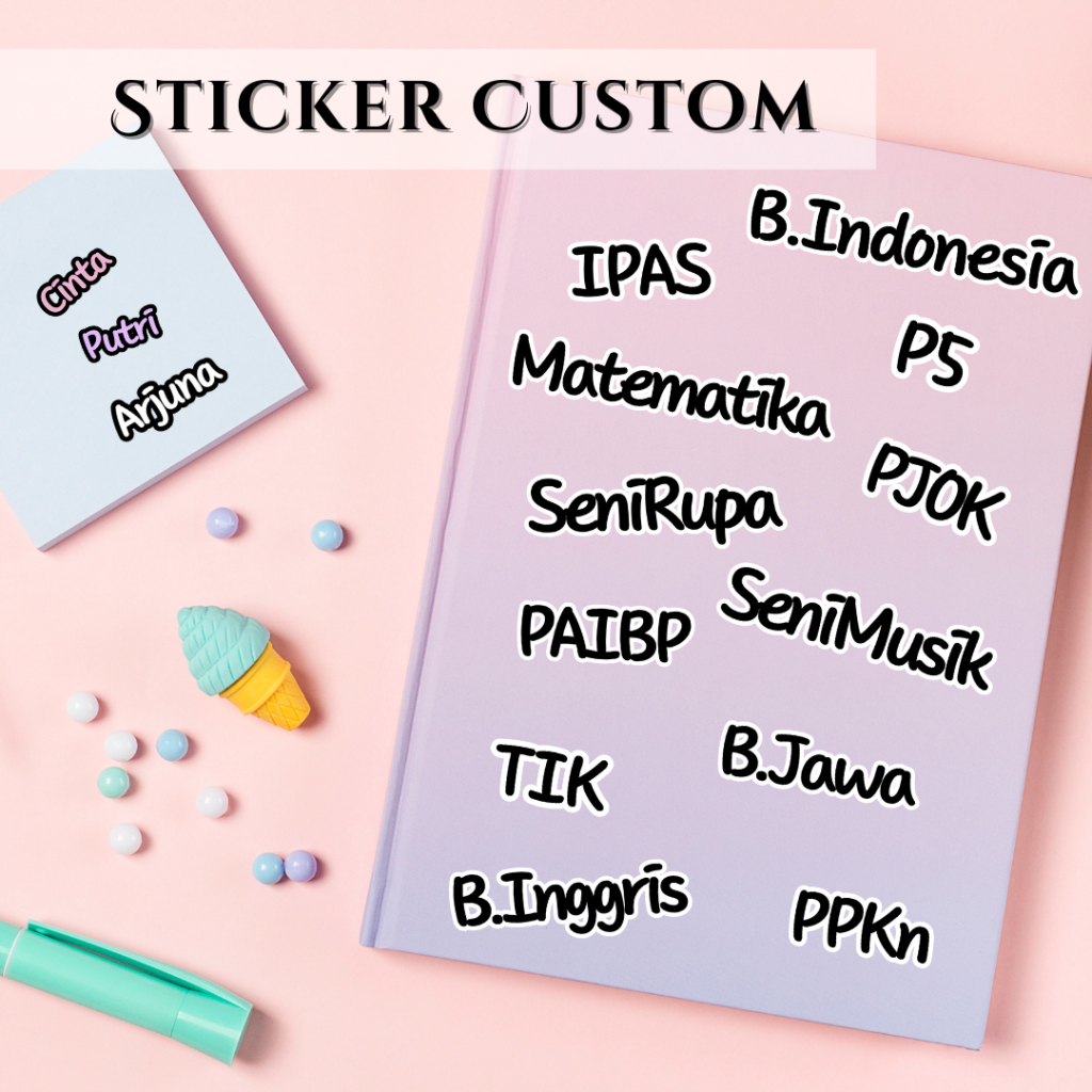 Sticker Nama Custom / Sticker Label Nama Mata Pelajaran