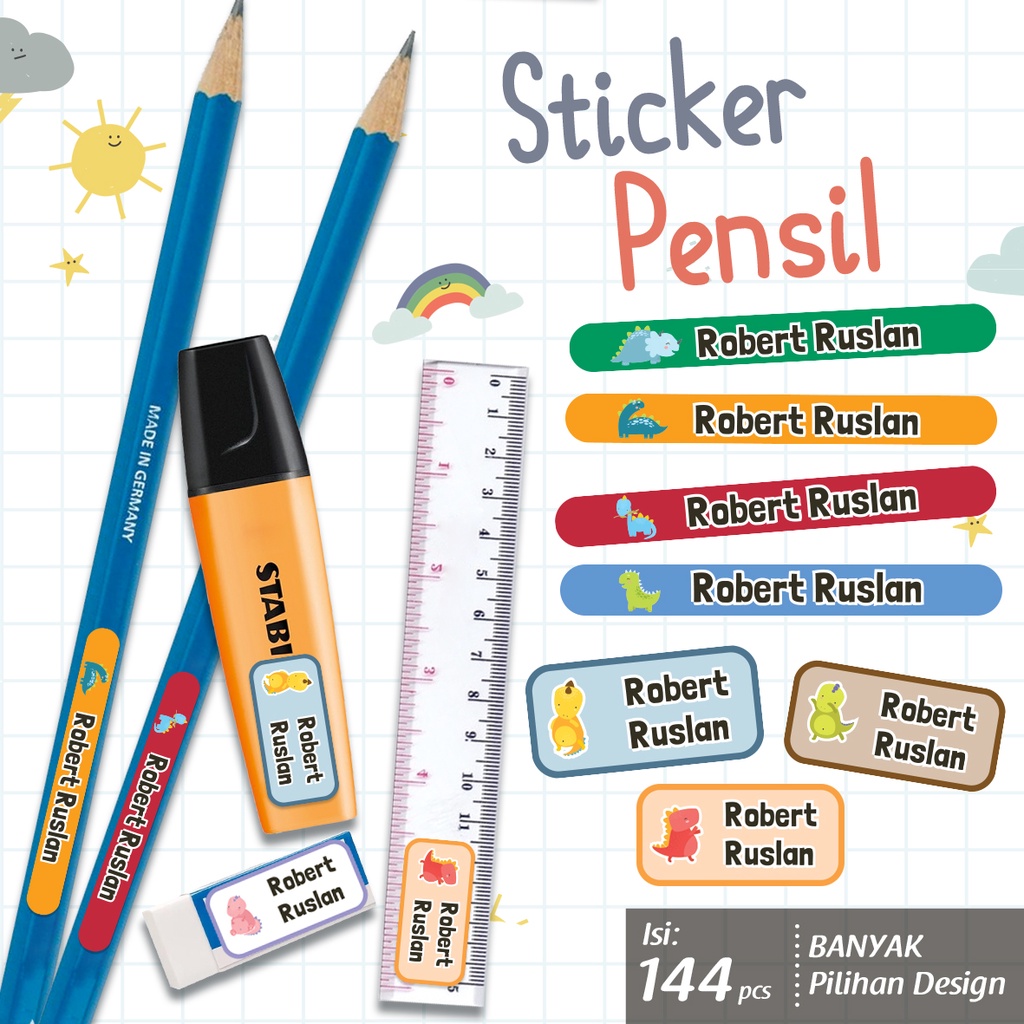 Sticker Nama Custom/ Sticker Pensil/ Label Nama Anak