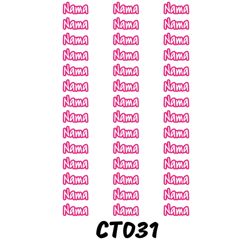 Sticker Nama Cutting Label Waterproof Tahan Air Text 31 (CT031)