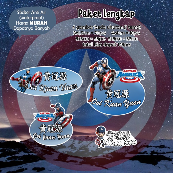 Sticker Nama Lucu/Custom/Cartoon/Waterproof - CAPTAIN AMERICA 95pc
