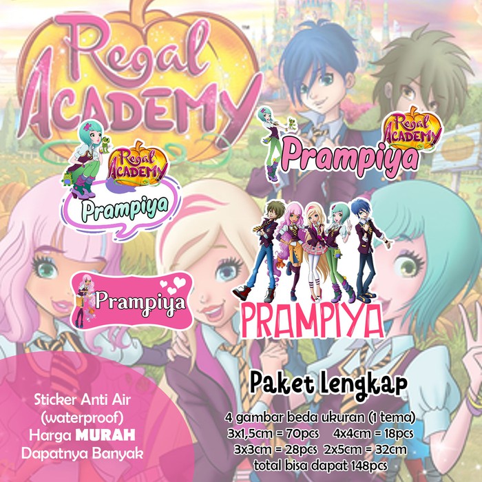 Sticker Nama Lucu/Custom/Cartoon/Waterproof - REGAL ACADEMY 95pc
