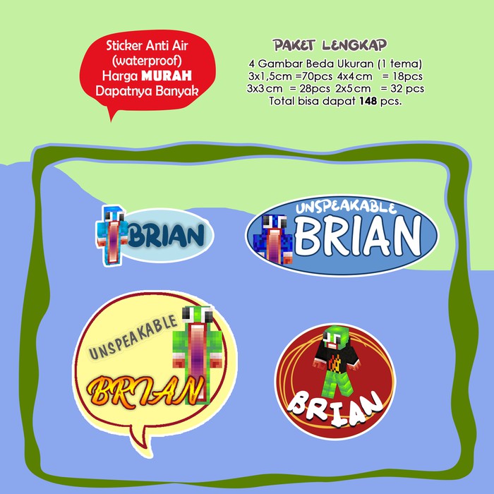 Sticker Nama Lucu/Custom/Cartoon/Waterproof - UNSPEAKABLE 95pc