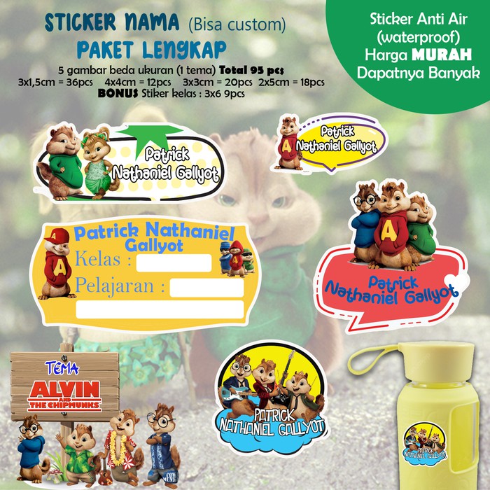 Sticker Nama Lucu/Custom/Kartun/Cartoon/Waterproof - ALVIN 95pc