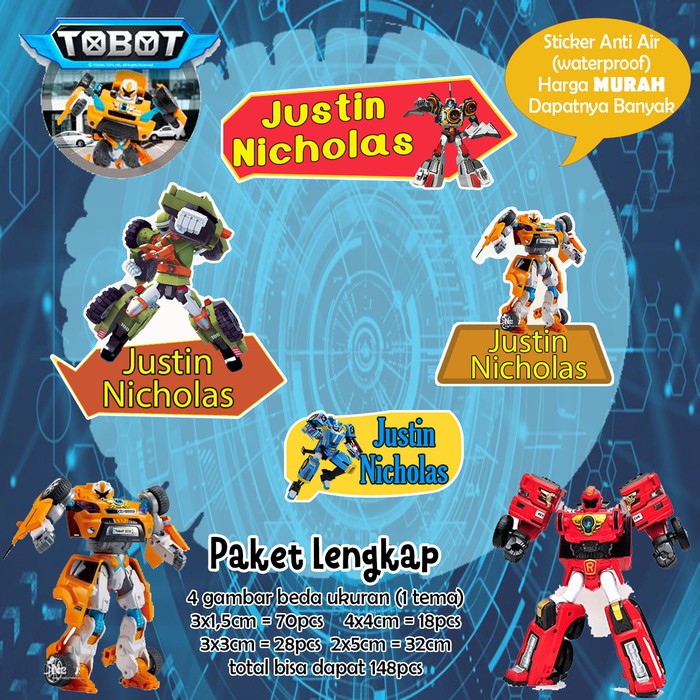 Sticker Nama Lucu/Custom/Kartun/Cartoon/Waterproof - TOBOT 95pc
