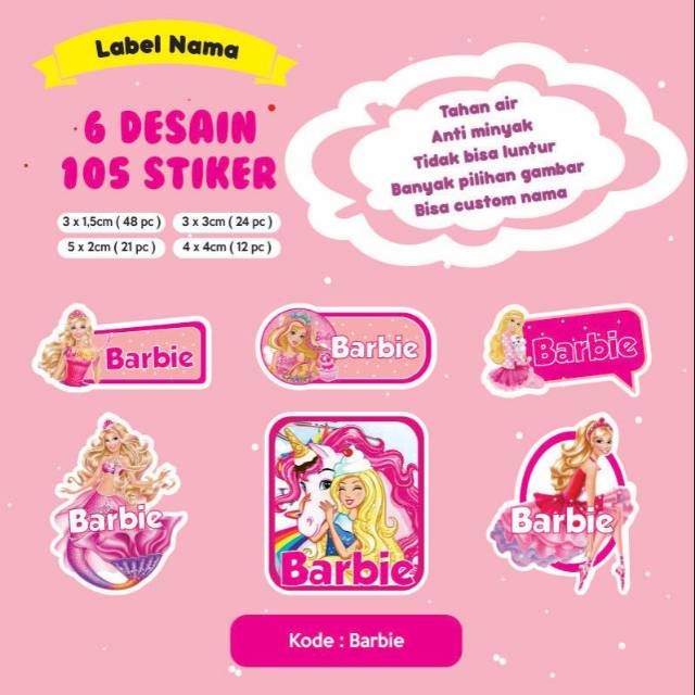 Tersedia 70 designs saat ini #labelnama#stickernamawaterproof#stickernamamurah #sticketcustom#barbie