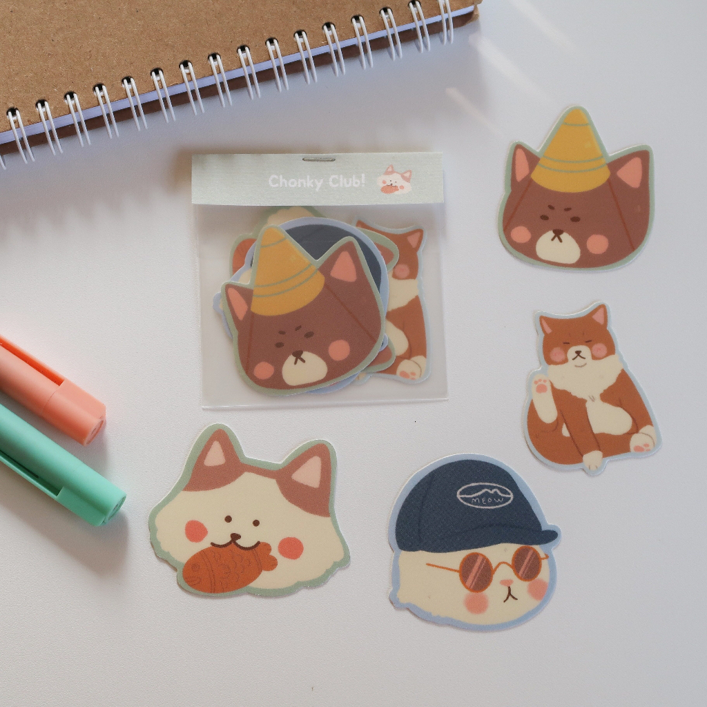 Sticker Pack berisi 4 pcs stiker dengan 4 design kucing gembul