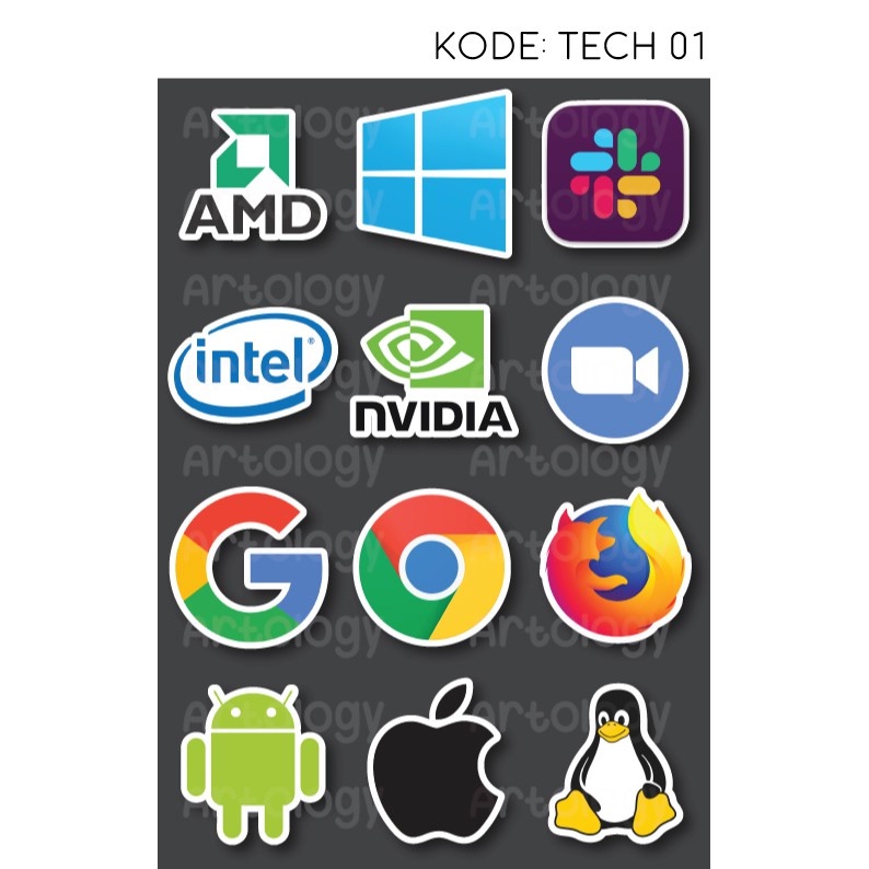 Sticker Pack Murah Isi 12 Logo Programming & Technology Stiker Laptop Koper