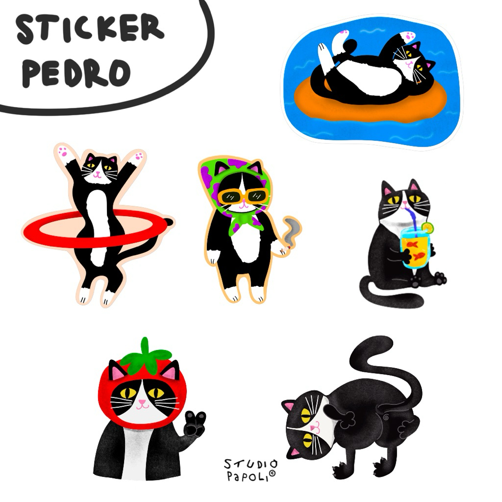 Sticker Pack "Pedro" by Studio Papoli, isi 8 pcs. Tingkah Pedro si kucing underated dari Komplek Rahayu.
