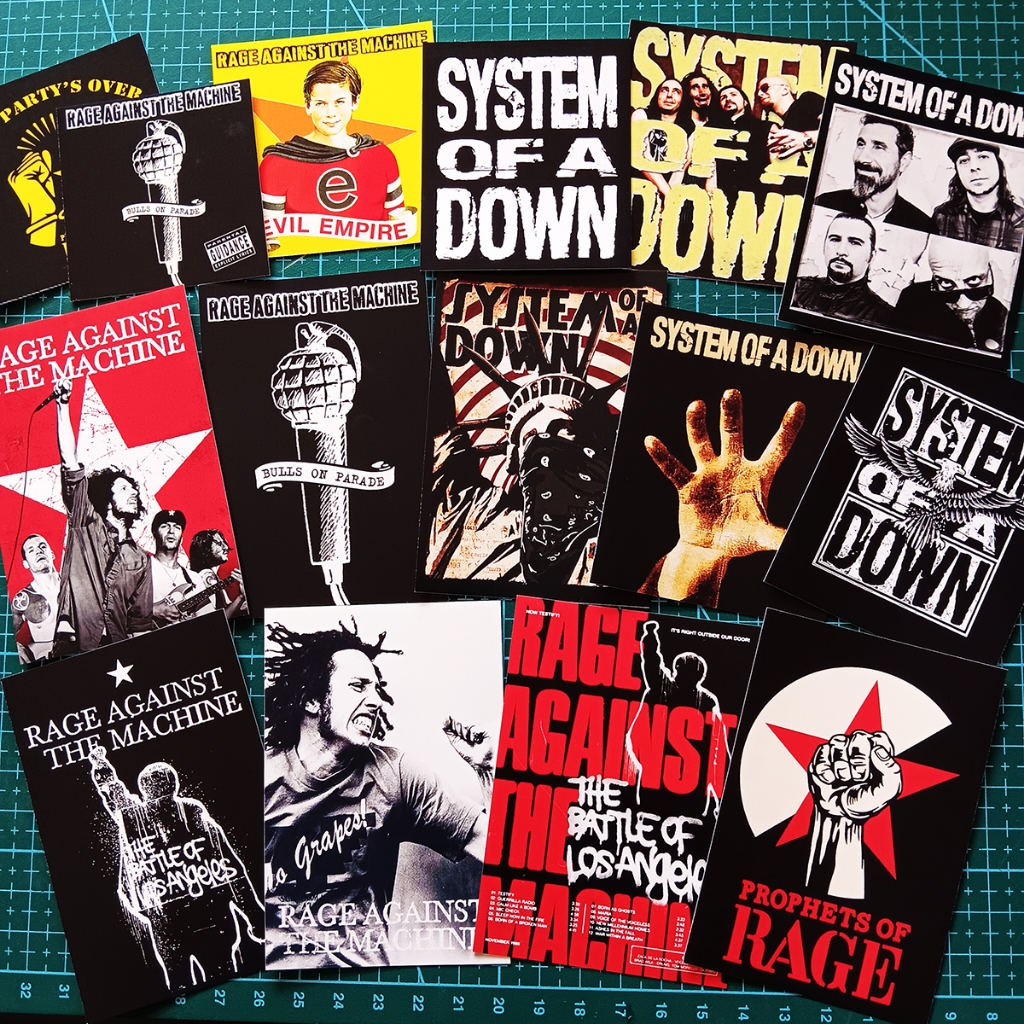 Stiker pack campuran band Rage Againts The Machine dan System of A Down.