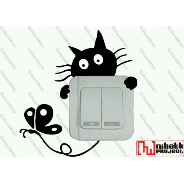 sticker saklar cat and butterfly