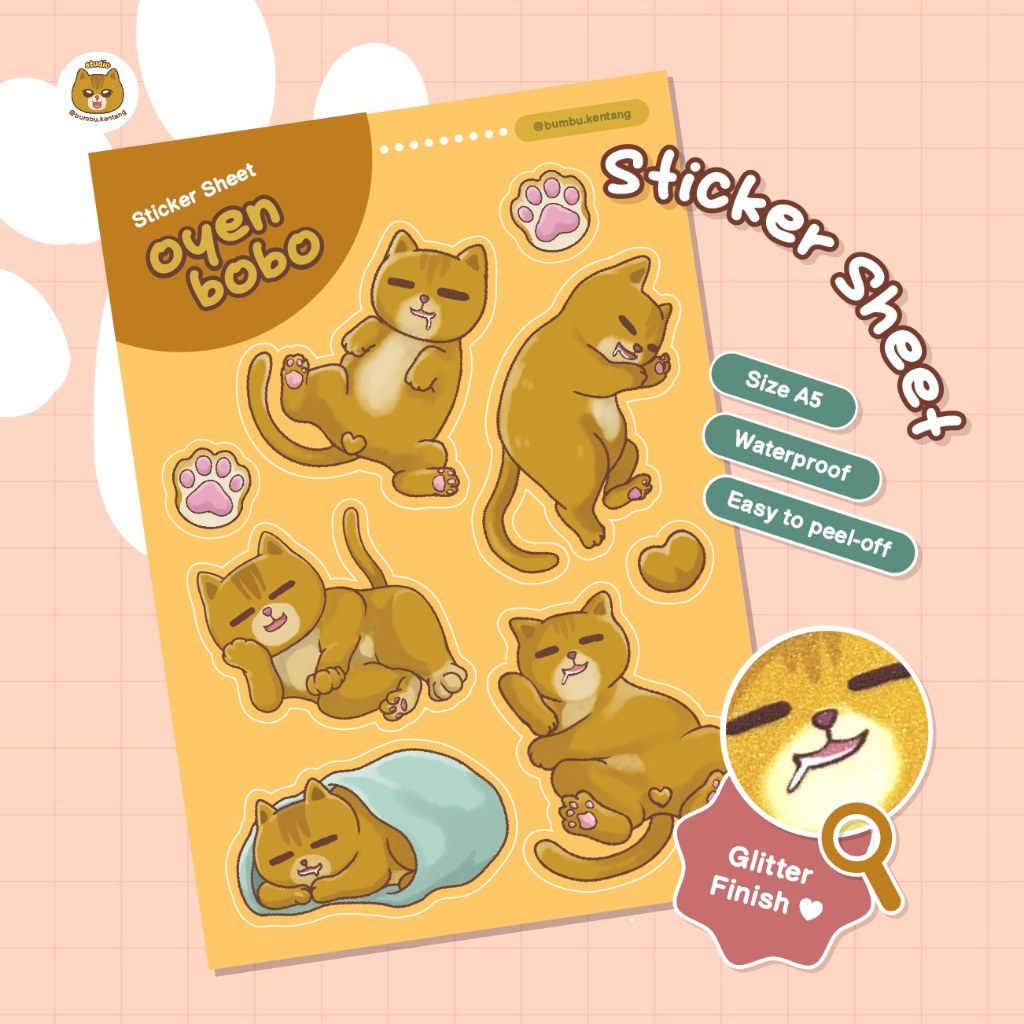 Sticker sheet berisi macam-macam pose bobo si Oyen.
