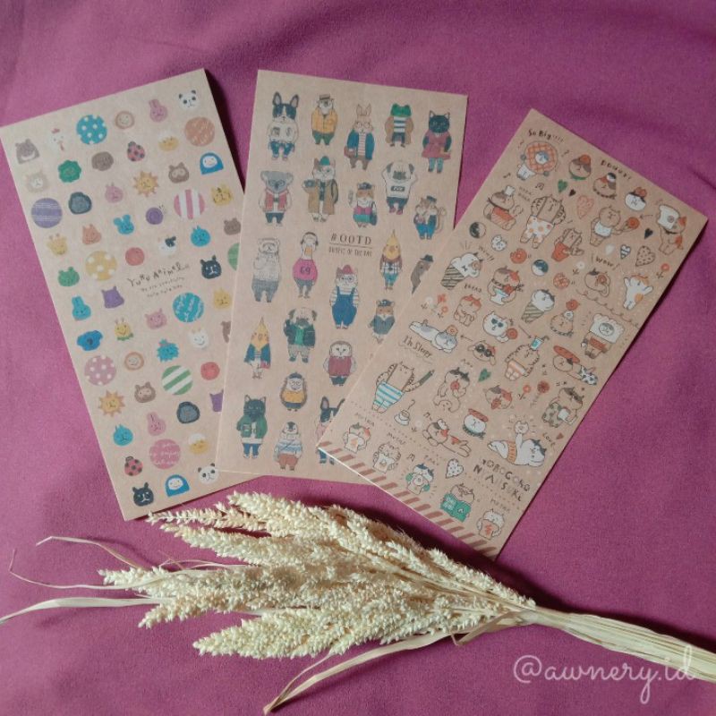 Sticker ini unik banget karena terbuat dari bahan kertas coklat dan motifnya pun lucu-lucu banget. Stickernya udah di cutting jadi tinggal pake deh