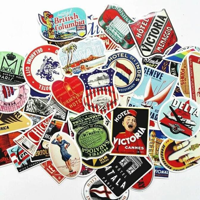 Sticker Stiker Koper 50 Pcs : Retro Hotel Travel Logo / Rimowa Sticker Kualitas Terbaik