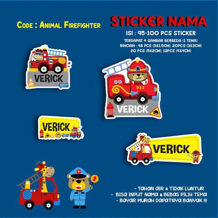 Sticker / Stiker Label Nama Karakter Tema ANIMAL FIRE RESCUE