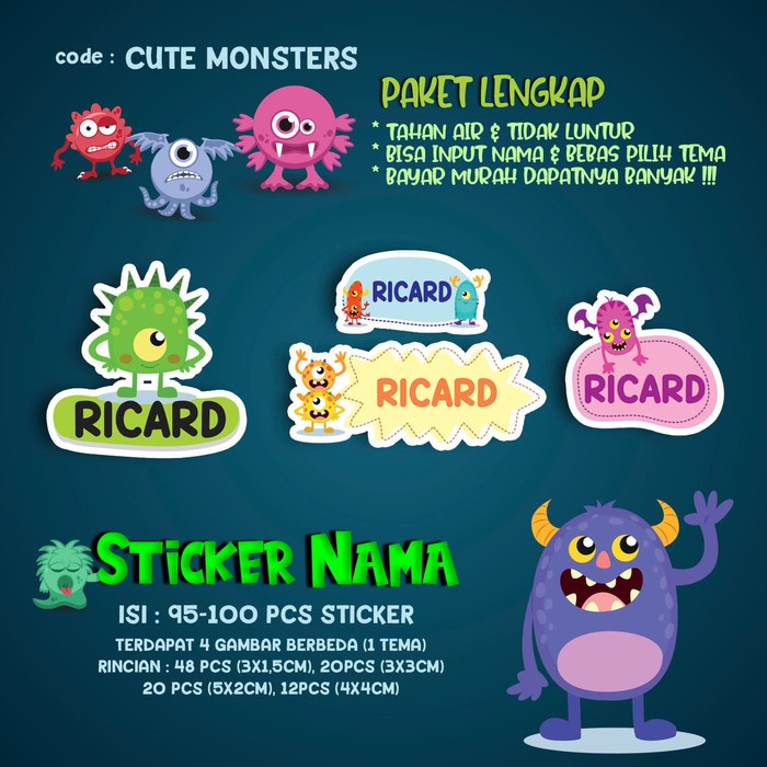 Sticker / Stiker Label Nama Karakter Tema MONSTER