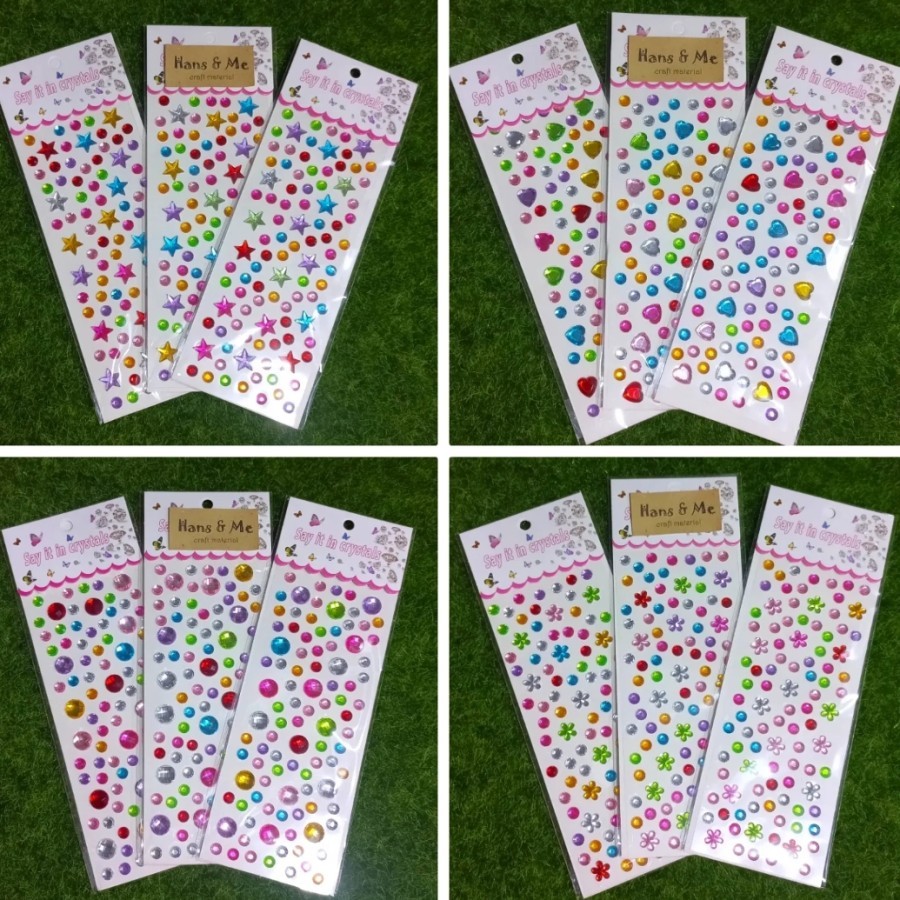 Sticker Stiker Timbul Manik Rhinestone Bintang Hati Bulat Bunga (K) - Bintang