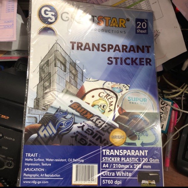 Sticker Transparan Printer Injet Isi 20 Lembar Non Water Proof
