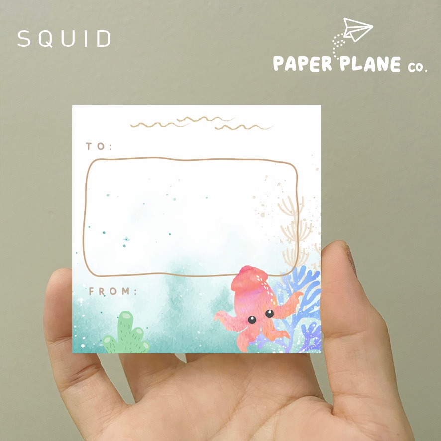 Sticker ukuran 7x7cm. Empat pilihan design ekslusif: Shark, Squid, Turtle, dan Whale. Bisa custom nama pengirim (1 nama per paket, maksimum 10 karakter). Apabila ada penambahan custom nama maka tulisan From seperti pada foto produk akan dihilangkan dan digantikan dengan nama. Pilih design dan font custom nama di varian produk. Contoh design & font dapat dilihan di etalase produk.