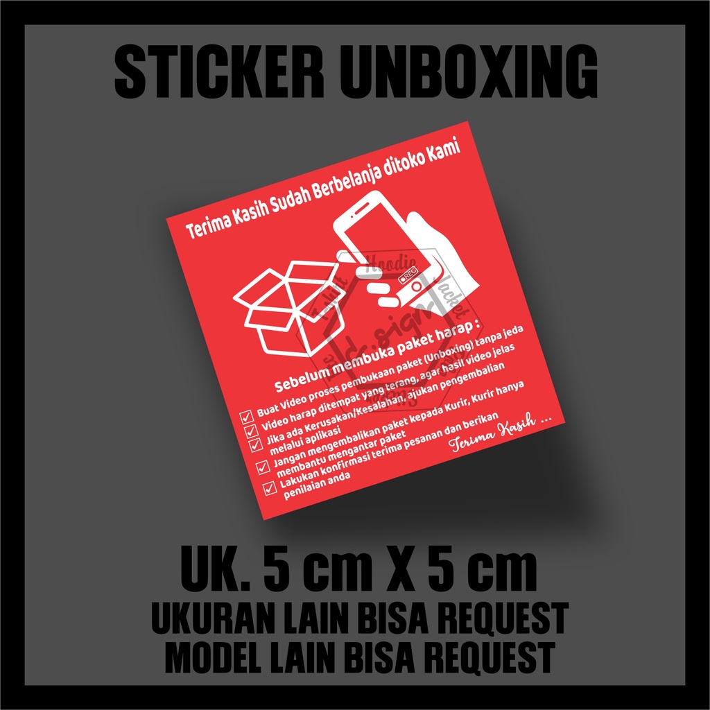 Sticker Unboxing untuk paket penjualanmu. Dengan ucapan terima ksih kepada pembeli. Serta petunjuk sebelum membuka paket. Pelanggan akan senang dan mengerti jika ingin melalukan pengembalian. Dan semoga repeat order dan meningkatkan penjualan