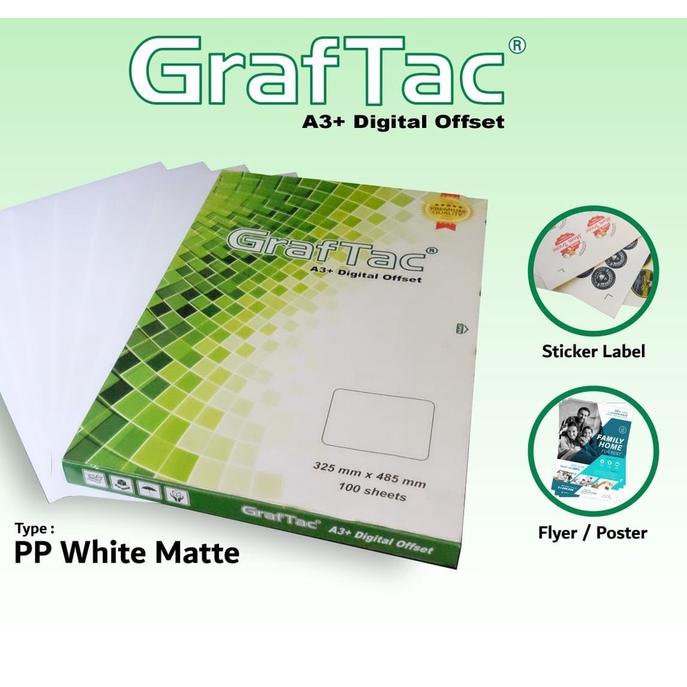 Permukaan sticker sudah dilapisi dengan primer penerima tinta sehingga hasil cetak pasti sempurna. Bahan sintetis, tahan air, tidak mudah sobek, tahan sinar matahari, tidak memudar.