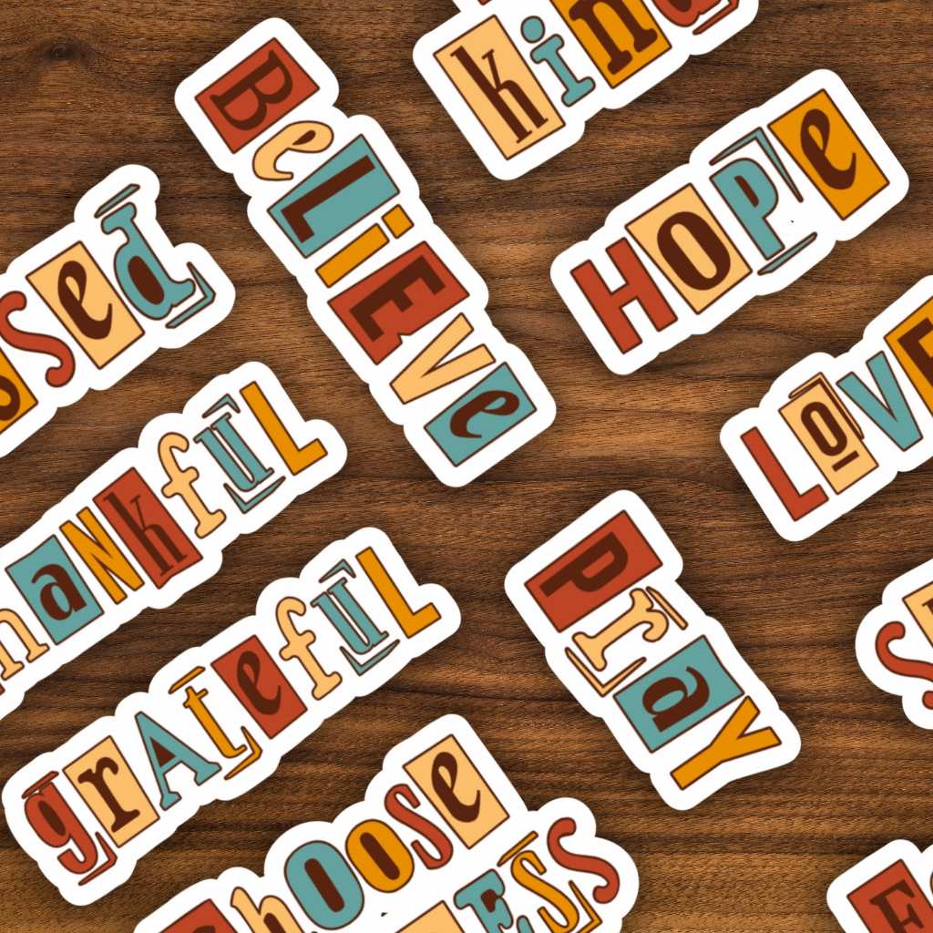 Sticker Vinyl Pack Ransom Note Letter Pray | Stiker Quotes Rohani Kristen Waterproof 15 Pcs
