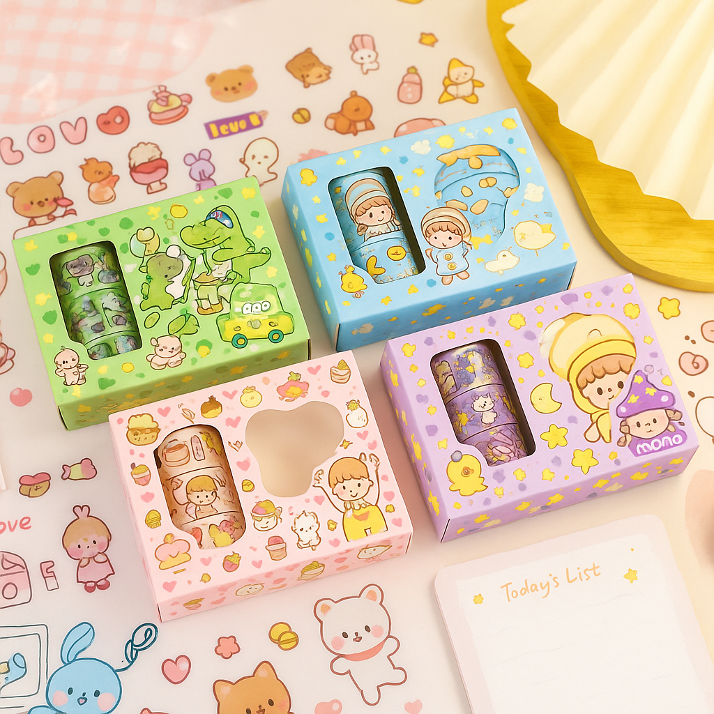 1 Box Sticker Momo (10 lembar stiker potong + 4 roll washi tape)