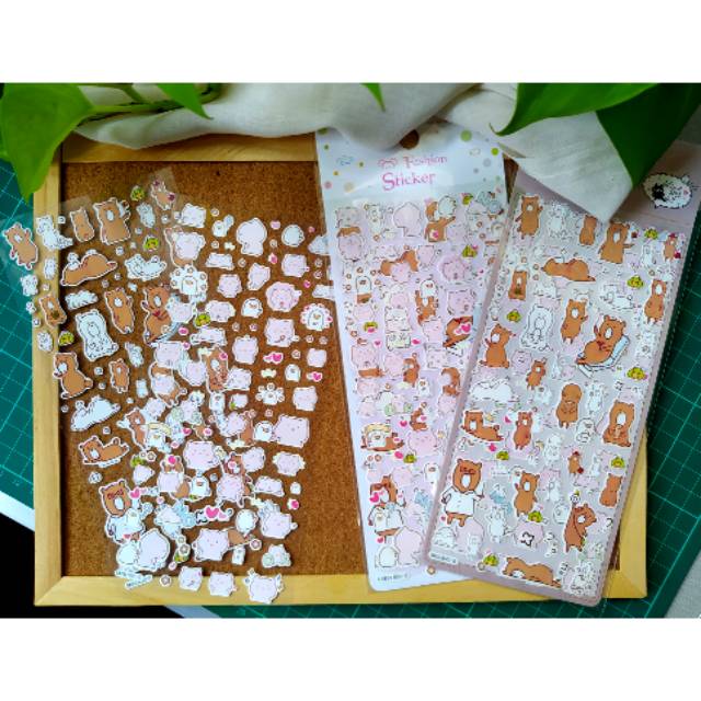 Sticker dgn bahan semi doff, terdapat 2 motif ( bear dan pig)