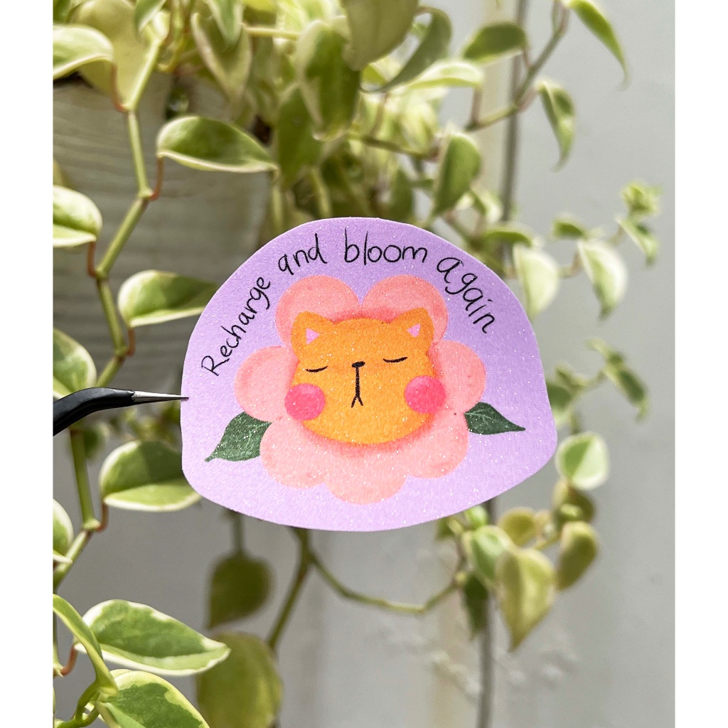 Sticker kucing bunga Recharge and Bloom Again