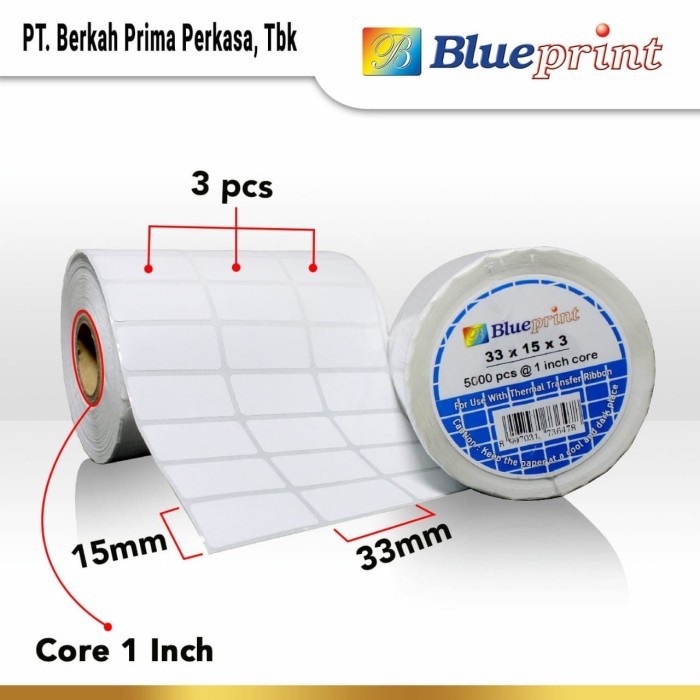 Sticker label Barcode 33x15mm 3 Line Semi Coated BLUEPRINT Core 1" isi 5000 Pcs