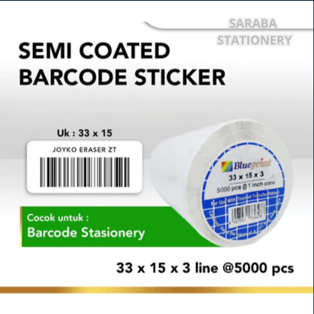Sticker label Barcode 33x15mm 3 Line Semi Coated BLUEPRINT Core 1" isi 5000 Pcs
