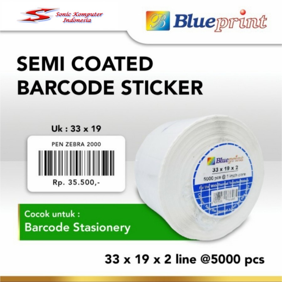 Sticker label Barcode 33x19mm 2 Line Semi Coated BLUEPRINT isi 5000Pcs Stiker 33x19x2
