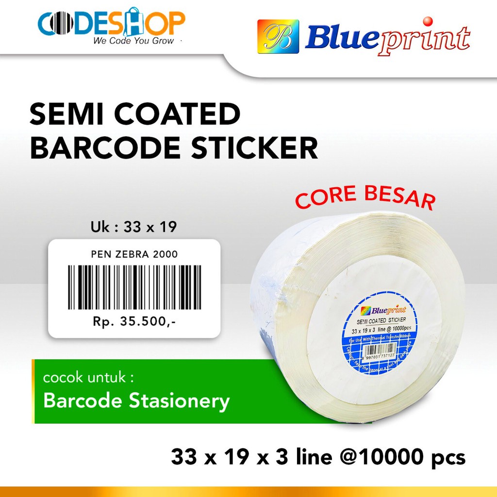 Sticker label Barcode 33x19mm 3 Line Semi Coated BLUEPRINT Core 1" isi 5000 Pcs
