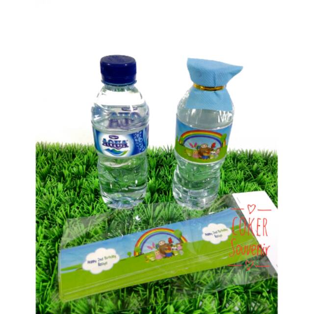 Label air mineral ini terbuat dari kertas sticker sehingga mudah di pasang bisa request tema sesuai keinginan.ukuran air mineral 380 ml.