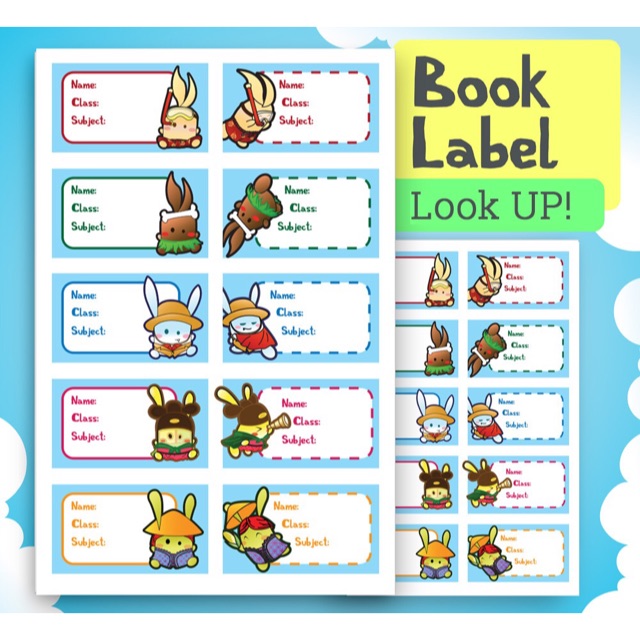 Sticker nama untuk buku pelajaran anak.