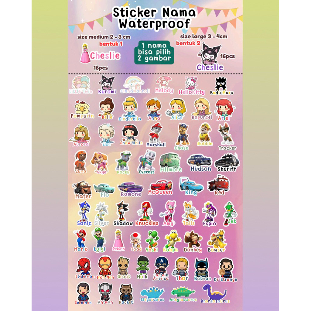 Sticker nama Waterproof