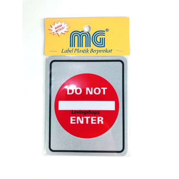 Sticker tulisan " DO NOT ENTER " dengan ukuran 9,5 cm X11,5 cm, warna silver.