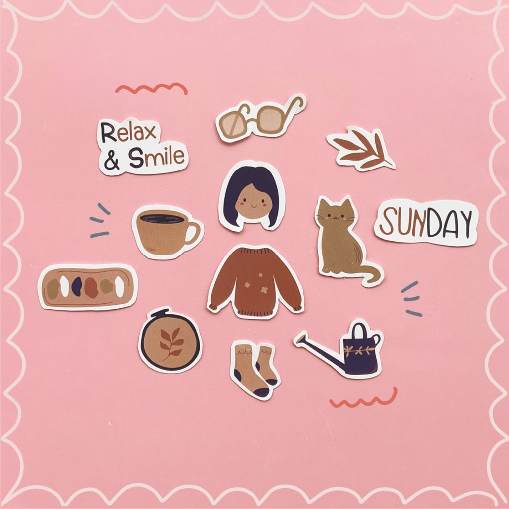 - Berisi 12 sticker typography, kegiatan, barang yang mengingatkan kamu untuk rileks!