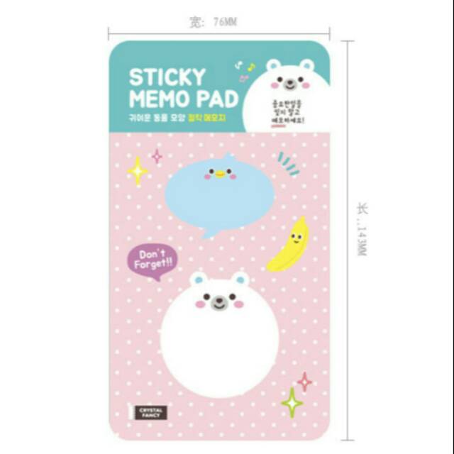 Sticky Memo Pad Animal berbentuk berbagai jenis binatang yang lucu. Tempat untuk menulis catatan sangat besar. Setiap set terdiri dari 2 jenis binatang yang masing-masing terdiri dari 20 lembar memo.